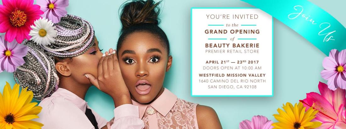 It’s called Beauty Bakerie, a hip and trendy makeup brand that is Vegan friendly AND black owned. Can I get a unicorn with that, maybe? I am excited to try their products. I know that when many people think of vegan friendly makeup one may not envision it as being something they’d really want because it may not be effective, limited in product, lack of colors or be more expensive. However Beauty Bakerie has an assortment of products with poppin colors, fun branding, a youthful vibe and an affordable price point that makes you want in on what they’ve got! The fact that Beauty Bakerie chose San Diego as a location is pretty promising for beauty lovers in the area. I was not familiar with the brand until I noticed the sign in front of an empty store front at the Mission Valley Westfield Shopping Center. Seems they have quite the following and appeal to a diverse customer base.