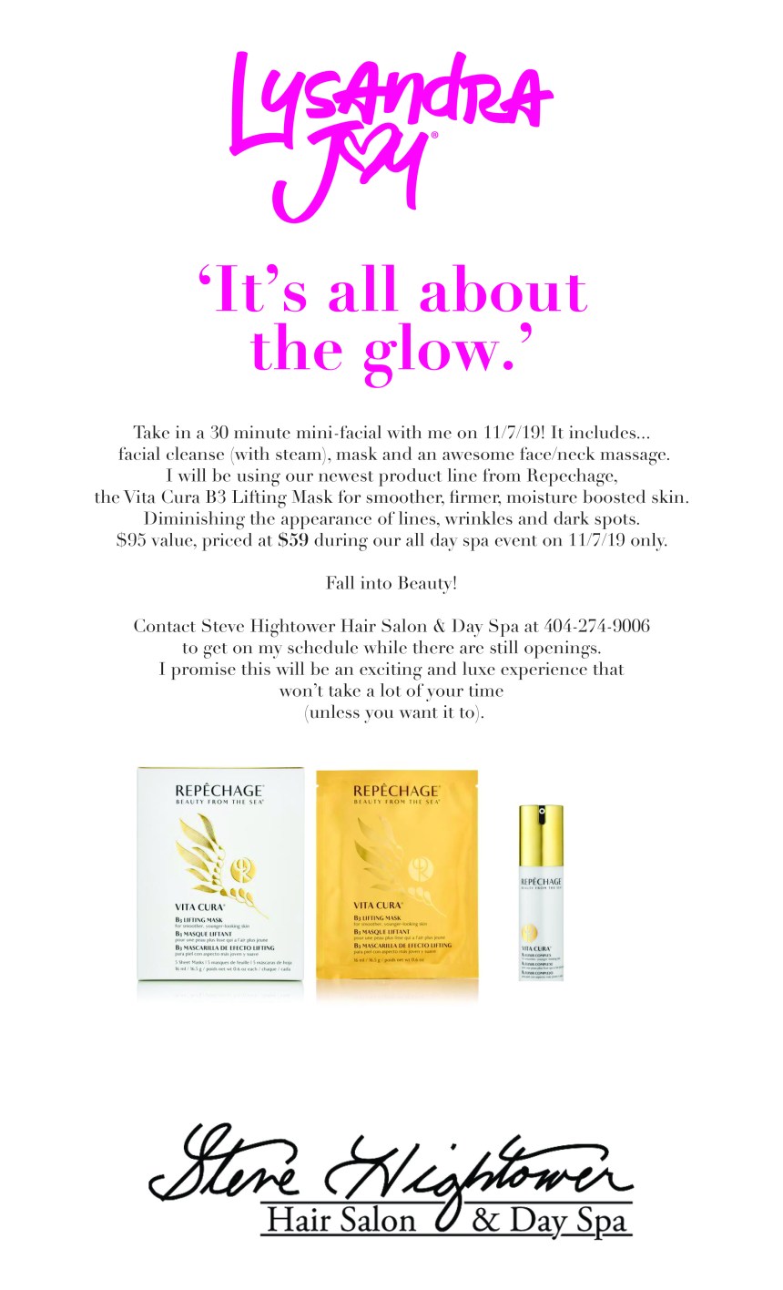 Great skin doesn’t happen by chance, it happens by appointment. I’m looking to see you at our spa event on 11/7/2019 mini-facials, light bites, cocktails while learning about your skin. Get a skin scan and a Repechage facial featuring B3 as the key ingredient to smoother, younger looking skin. Serious this ingredient on your skin is a game changer! In 30 minutes your face will be rejuvenated.